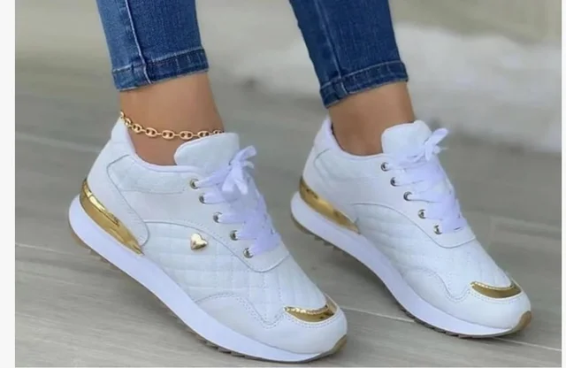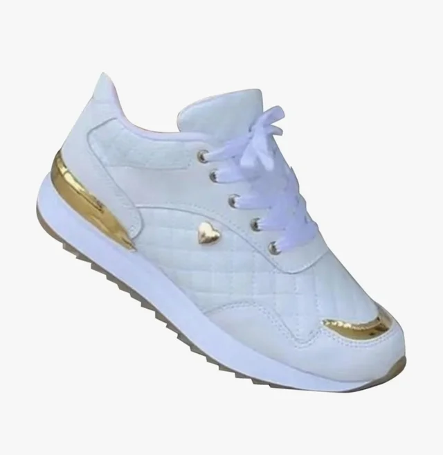 Las zapatillas deportivas blancas y doradas son el complemento ideal para tu guardarropa. Con una acertada combinación de colores, estas zapatillas destacan por su diseño minimalista pero elegante. El blanco puro te ofrece una apariencia clásica y limpia, mientras los detalles dorados añaden un toque de lujo y sofisticación, haciéndolas ideales tanto para actividades deportivas como para eventos casuales.